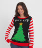 Rockin' around the Christmas tree was so last year. Our Women's Get Lit Light Up ugly Christmas sweater puts a twist on classic slang. We're no rockin' robin. We're getting lit. This festive one-piece still has everything we love about Christmas - the candy cane sleeves and the classic Christmas star. But it's got one more super cool element. That's right - it lights up, baby. It'll be an instant hit in the Christmas sweater competition, and it's also comfy AF. Rock up at the Christmas disco or just impress your nieces and nephews with your hip street slang. Word.